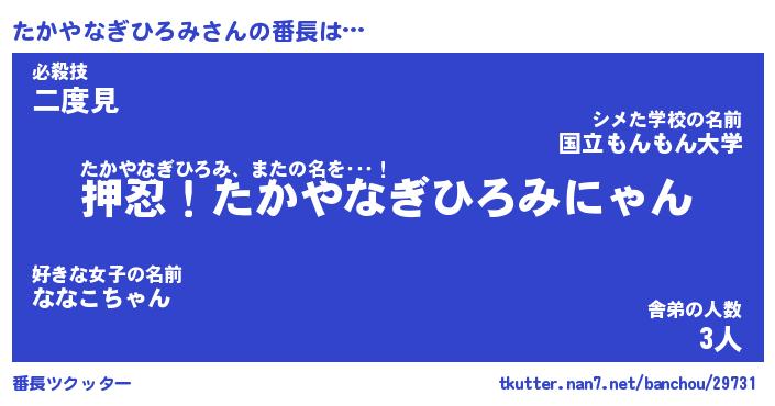 | ヒーロー風カッコイイあだ名 | 『スーパータカヤナギヒロミ』 |