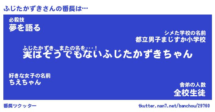 | 肩書あだ名 | 『ふじたかずき社長』『ふじたかずき団長』 |