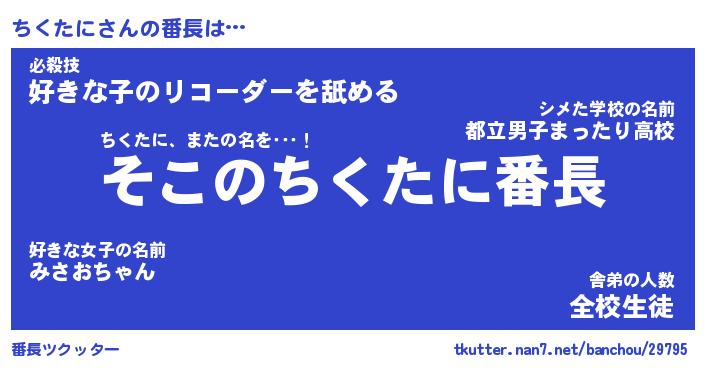 | 肩書あだ名 | 『ちくたに店長』『ちくたに総理大臣』 |