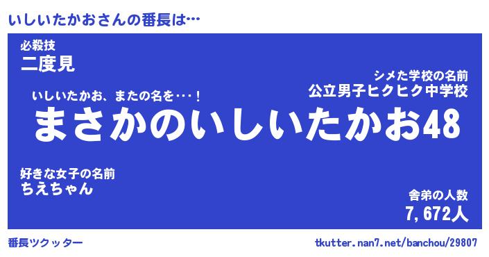 | ピコ太郎風あだ名 | 『イコ史郎』『ピイ四郎』『イシ史郎』 |