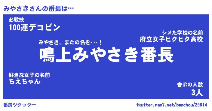 | ヒーロー風カッコイイあだ名 | 『スーパーミヤサキ』『銀牙騎士ミヤ』 |