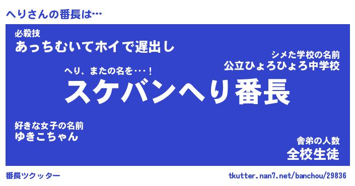 | ピコ太郎風あだ名 | 『ヘコ史郎』『ピヘ八郎』『ヘリ二郎』 |