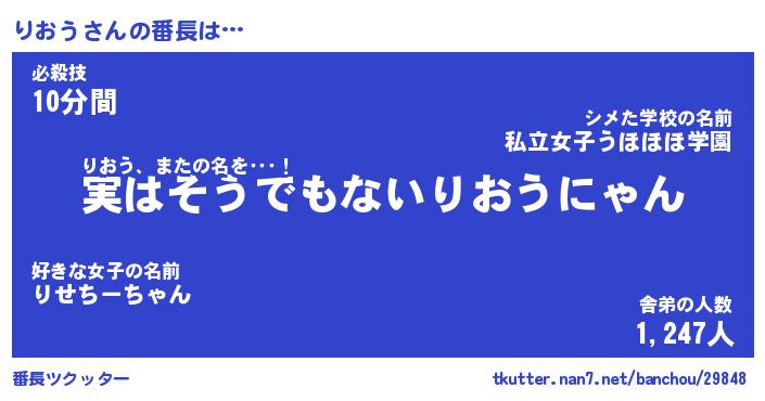 | 意味不明あだ名 | 『ペロリンりおう』『りおうフォーエバー』 |