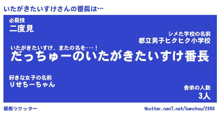 | 伝説のあだ名 | 『伝説のスナイパーいたがきたいすけ』 |