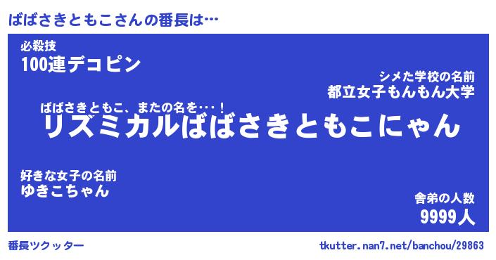 | 意味不明あだ名 | 『ペロリンばばさきともこ』 |