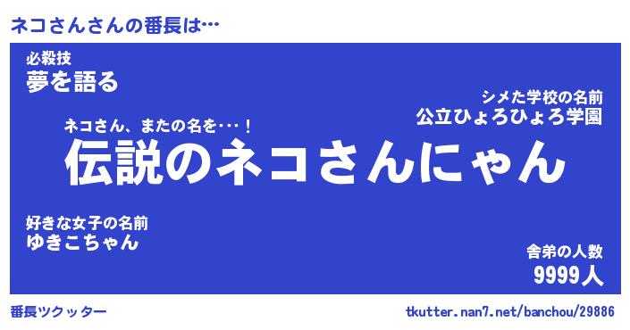 | ヒーロー風カッコイイあだ名 | 『スーパーネコサン』『天弓騎士ネコ』 |