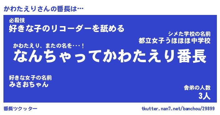 | ヘコむあだ名 | 『かわにー』『なまこ酢』 |