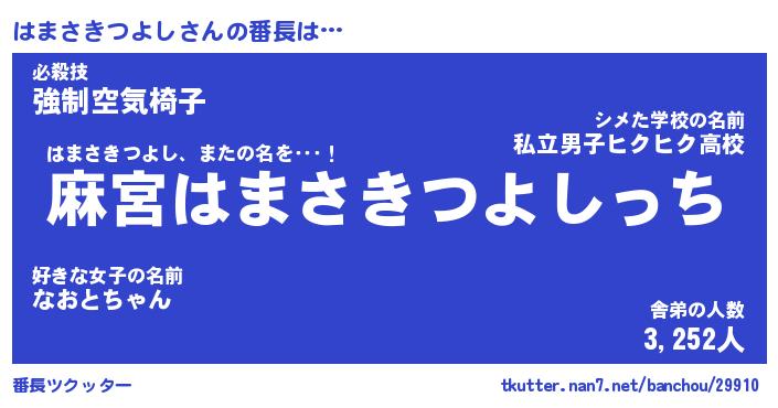| ヒーロー風カッコイイあだ名 | 『スーパーハマサキツヨシ』 |