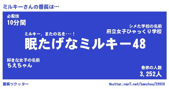 | 意味不明あだ名 | 『ペロリンミルキー』『永久保存ミルキー』 |