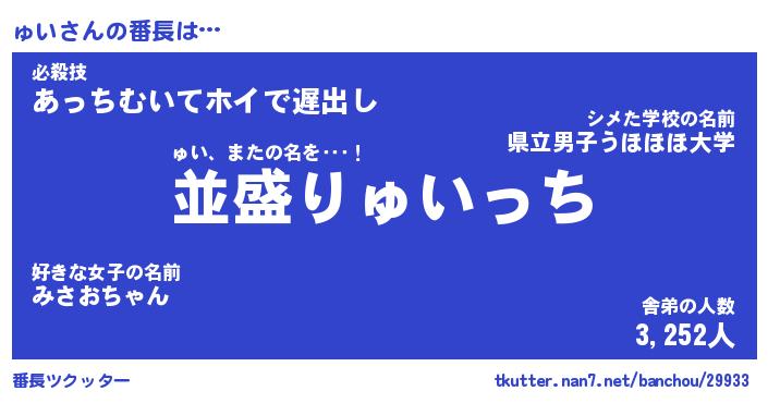 | 2回繰り返すあだ名 | 『ゅいゅい』『ゅゅいい』『おらおら』 |
