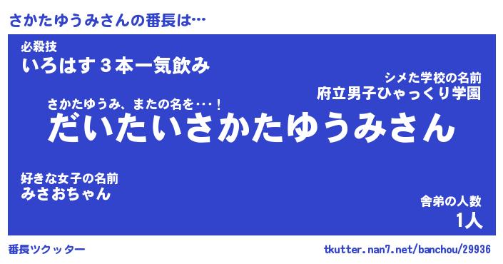 | 肩書あだ名 | 『さかたゆうみ御曹司』 |