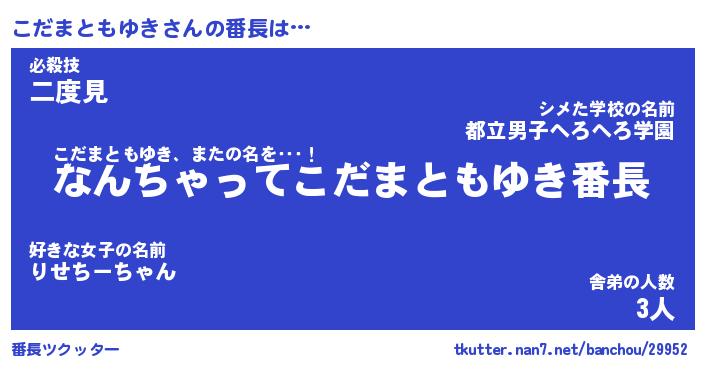 | 肩書あだ名 | 『こだまともゆき御曹司』 |