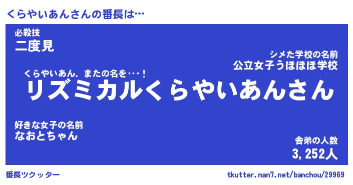 | 2回繰り返すあだ名 | 『くらくら』『くくらら』『ぶーぶー』 |