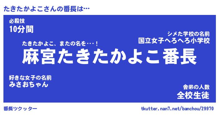 | ヒーロー風カッコイイあだ名 | 『スーパータキタカヨコ』『暗黒騎士タキ』 |