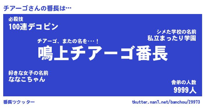 | ファンタジー風あだ名 | 『チアフェル』『エターナルチアーゴー』 |