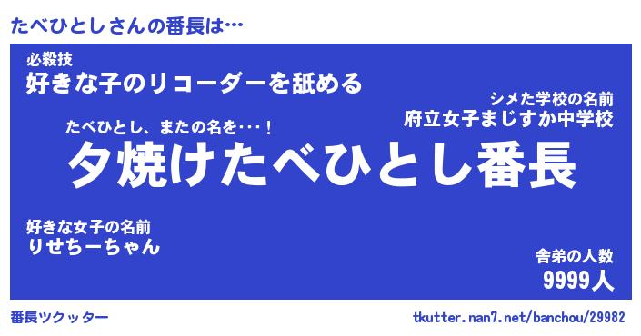| ヒーロー風カッコイイあだ名 | 『スーパータベヒトシ』『天弓騎士タベ』 |