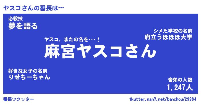 | ピコ太郎風あだ名 | 『ヤコ五郎』『ピヤ三郎』『ヤス一郎』 |