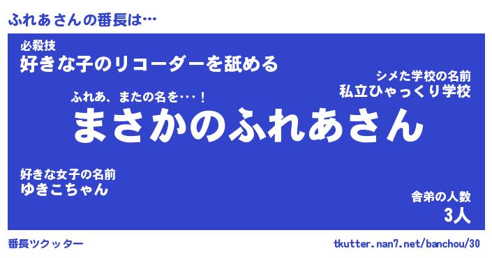 | ヘコむあだ名 | 『ふれっふぃ~』『なまこ酢』 |