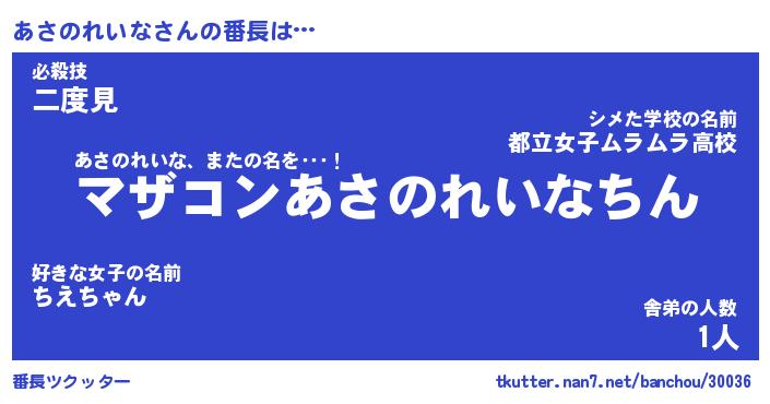 | ヒーロー風カッコイイあだ名 | 『スーパーアサノレイナ』『黄金騎士アサ』 |