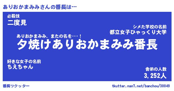 | 肩書あだ名 | 『ありおかまみみ店長』 |