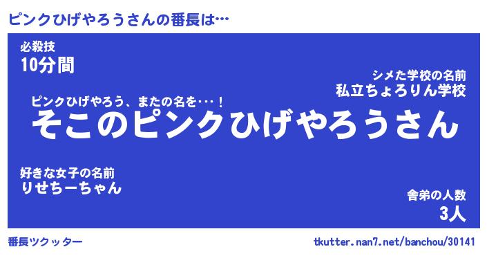 | ヒーロー風カッコイイあだ名 | 『スーパーピンクヒゲヤロウ』 |