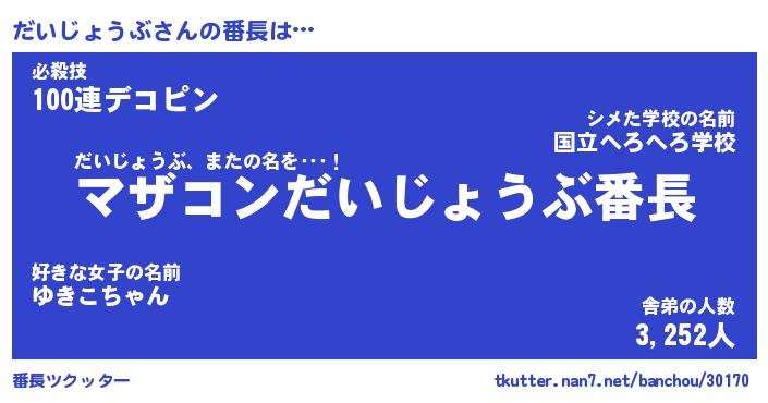 ヘコむあだ名 | 『だいにゅー』『つくし』 |