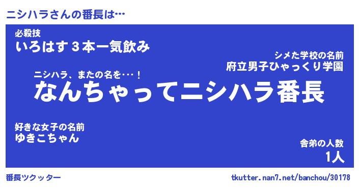 | ポケモン風あだ名 | 『ニシチュウ』『ニシハダネ』 |