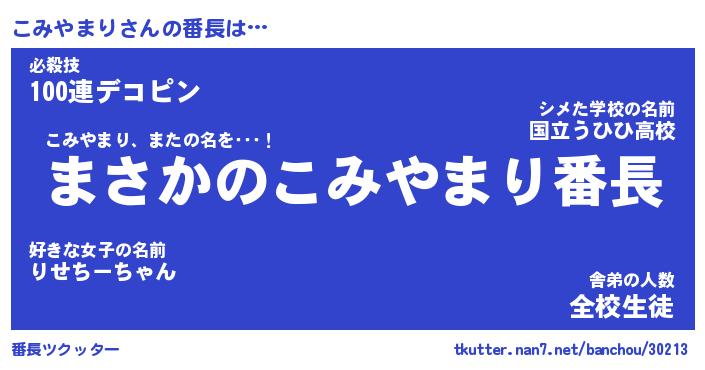 | 伝説のあだ名 | 『伝説のスナイパーこみやまり』 |