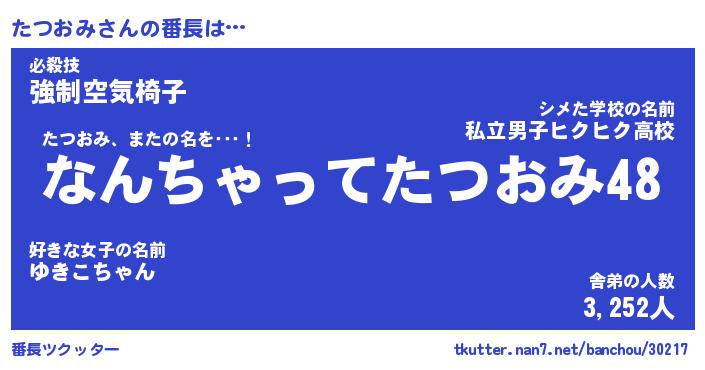 | 意味不明あだ名 | 『ペロリンたつおみ』『永久保存たつおみ』 |