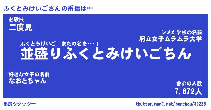 | 男性向けラノベタイトル風あだ名 | 『ふくとみけいごの憂鬱』 |