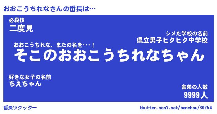 | ヒーロー風カッコイイあだ名 | 『スーパーオオコウチレナ』 |