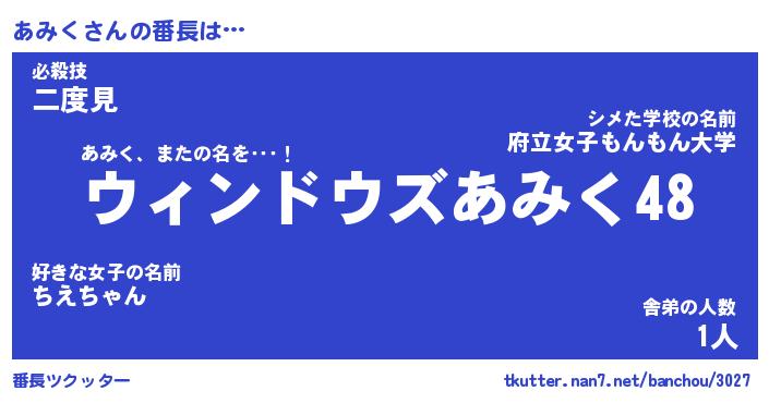 | ヒーロー風カッコイイあだ名 | 『スーパーアミク』『ウルトラあみくマン』 |