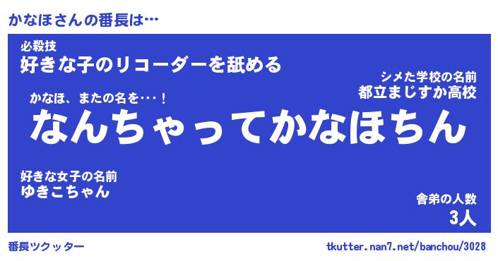 | ヘコむあだ名 | 『かなふぇ~』『なまこ酢』 |