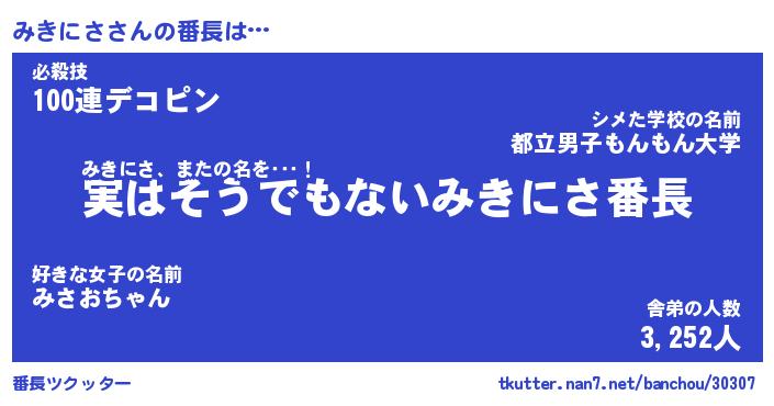 | 意味不明あだ名 | 『ペロリンみきにさ』『永久保存みきにさ』 |