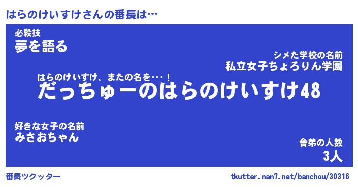 | ヒーロー風カッコイイあだ名 | 『スーパーハラノケイスケ』 |