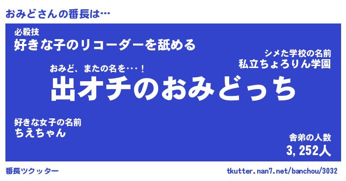 | 伝説のあだ名 | 『伝説のスナイパーおみど』 |