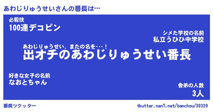 | 猫の名前『あわじりゅうせいにゃん』 |