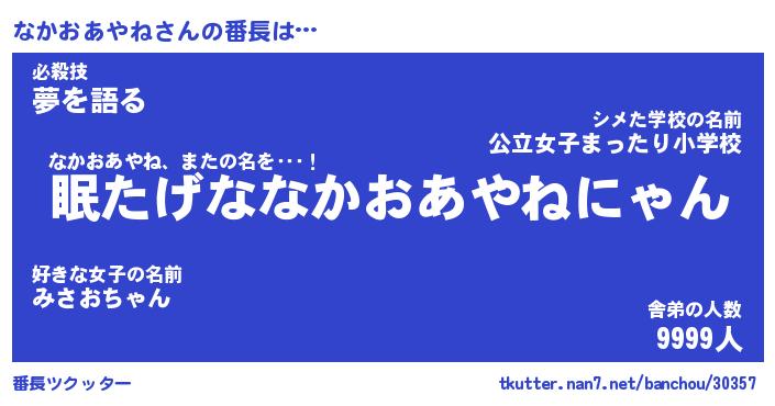 | 伝説のあだ名 | 『封印されしスナイパーなかおあやね』 |