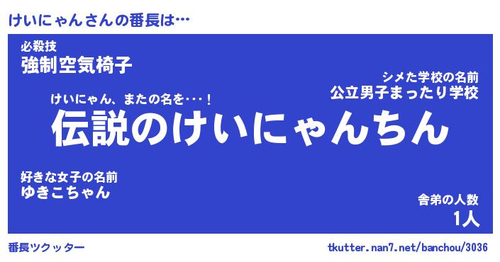 | 男性向けラノベタイトル風あだ名 | 『けいにゃんの憂鬱』 |