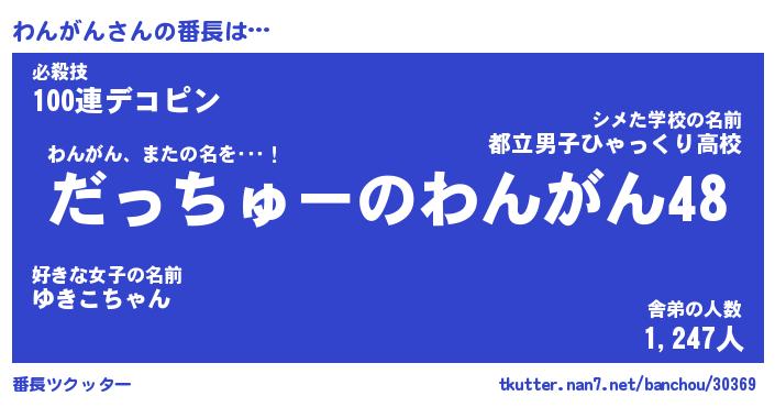 | 伝説のあだ名 | 『伝説のスナイパーわんがん』 |