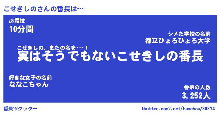 | ピコ太郎風あだ名 | 『ココ六郎』『ピコ四郎』『コセ一郎』 |