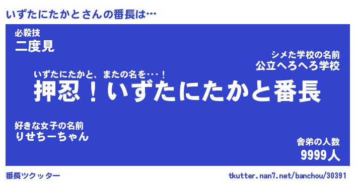 | 伝説のあだ名 | 『封印されしスナイパーいずたにたかと』 |