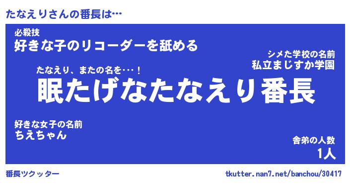 | 肩書あだ名 | 『たなえり店長』『たなえり国家主席』 |
