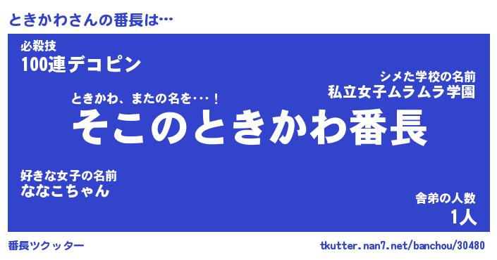 | ヘコむあだ名 | 『ときにー』『牛乳』『ときっぺ』 |