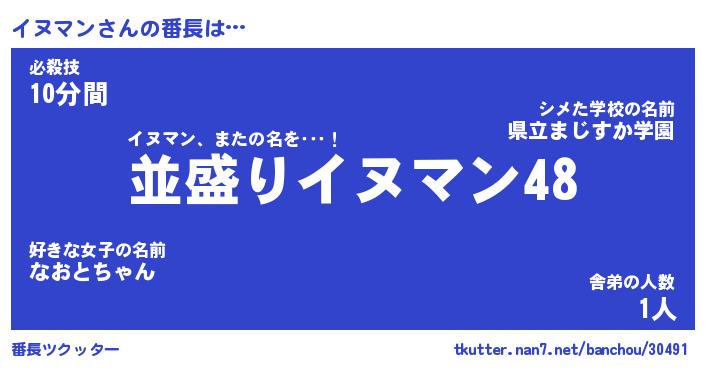 | 意味不明あだ名 | 『ペロリンイヌマン』『永久保存イヌマン』 |