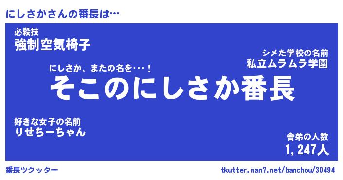 | ポケモン風あだ名 | 『ニシチュウ』『ニシサダネ』 |