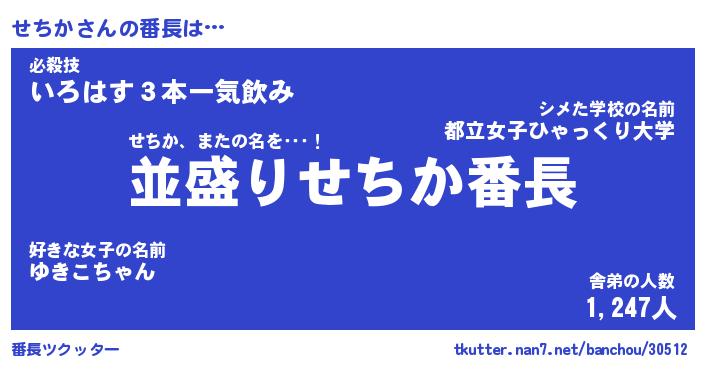 | ヘコむあだ名 | 『せちもー』『なまこ酢』『せち太郎』 |