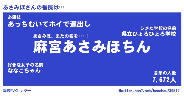 | 伝説のあだ名 | 『不死鳥のスナイパーあさみほ』 |