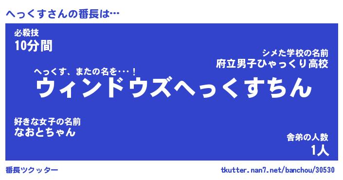 | 肩書あだ名 | 『へっくす社長』『へっくす総理大臣』 |