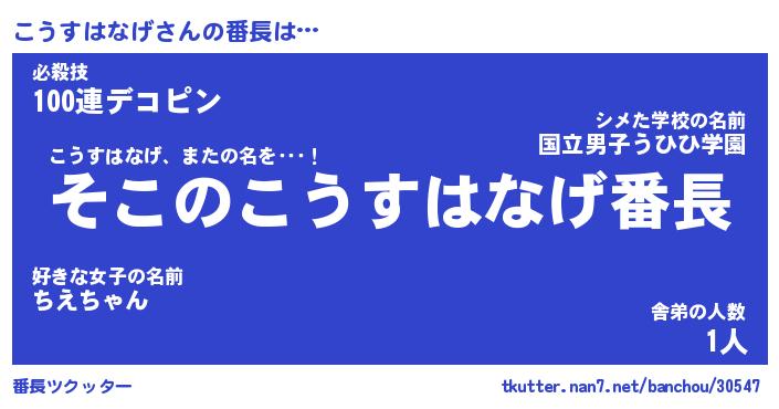 | ヒーロー風カッコイイあだ名 | 『スーパーコウスハナゲ』『暗黒騎士コウ』 |